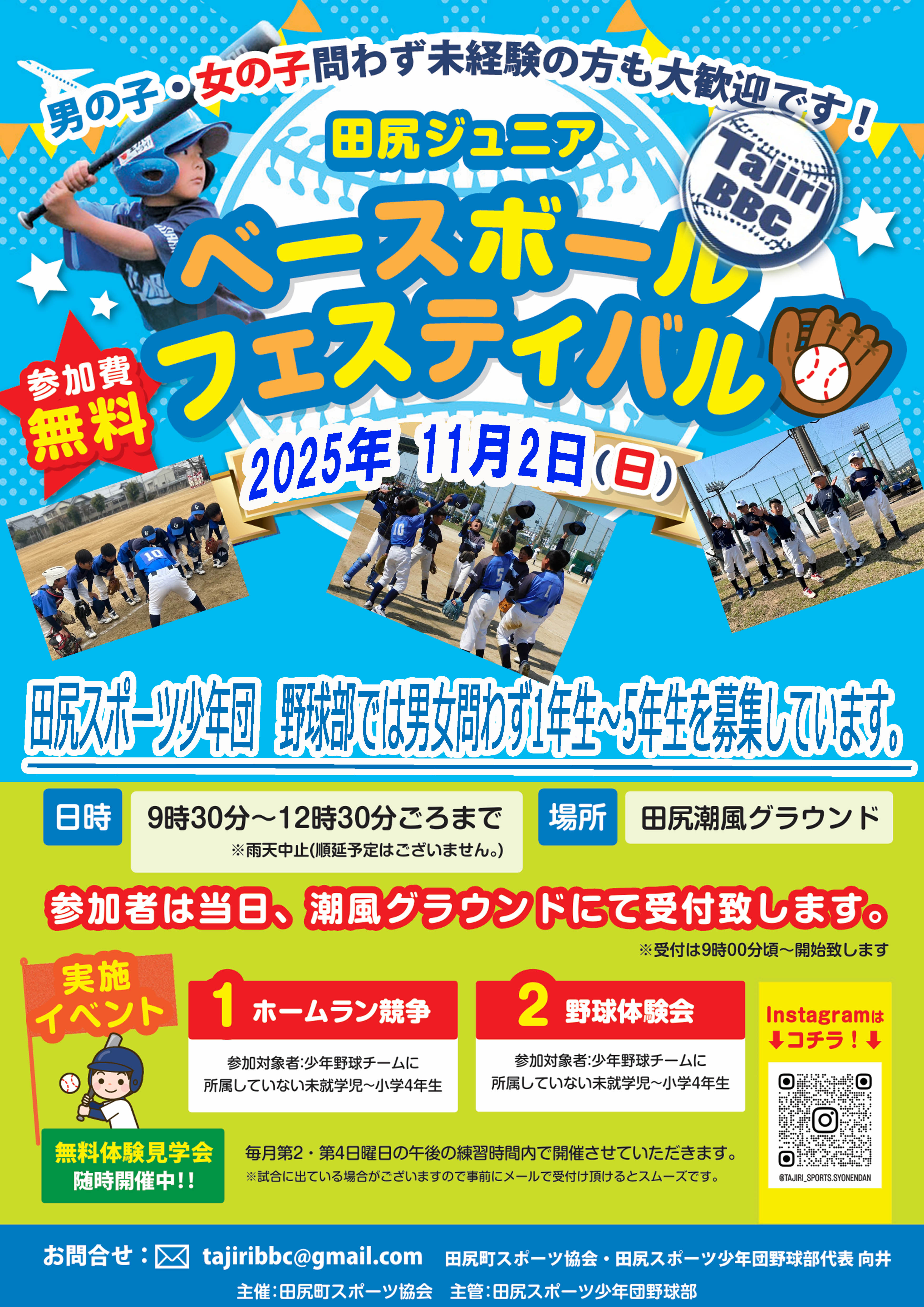 野球部主管にて「田尻Jr.ベースボールフェスティバル」